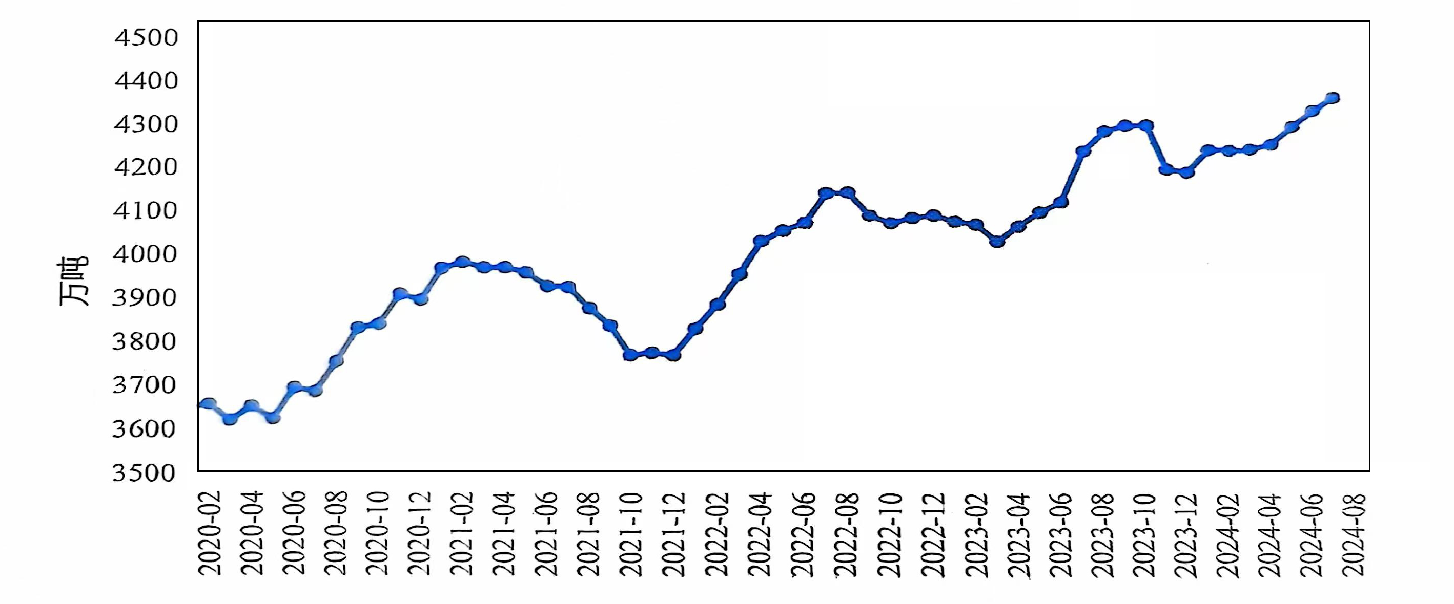 2024年以來,隨著云南地區(qū)電解鋁企業(yè)的全面復產(chǎn)以及內(nèi)蒙古地區(qū)新產(chǎn)能的投放,國內(nèi)電解鋁運行產(chǎn)能在上半年持續(xù)增加,并在8月繼續(xù)保持穩(wěn)定。2024年8月,國內(nèi)電解鋁建成產(chǎn)能4462萬噸/年,運行產(chǎn)能4346萬噸/年,較上月持平。8月份產(chǎn)量為371.5萬噸,環(huán)比增長0.1%,同比增長2.0%,日均產(chǎn)量11.98萬噸,環(huán)比下降3.1%。