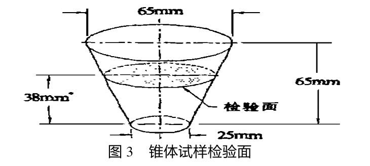 距底部38mm的橫截面為標準檢驗平面 ( 圖3) 。為此, 從距底部40mm 處與軸線呈正切方面切取試樣,在截體側(cè)面打上試樣號。
