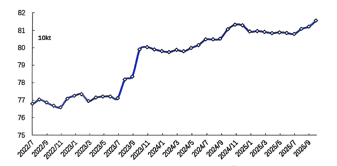 經(jīng)調(diào)整,10月份產(chǎn)量為376.6萬噸;預(yù)計(jì)11月份產(chǎn)量為364.2萬噸,同比增長(zhǎng)0.8%,日均產(chǎn)量約12.16萬噸。